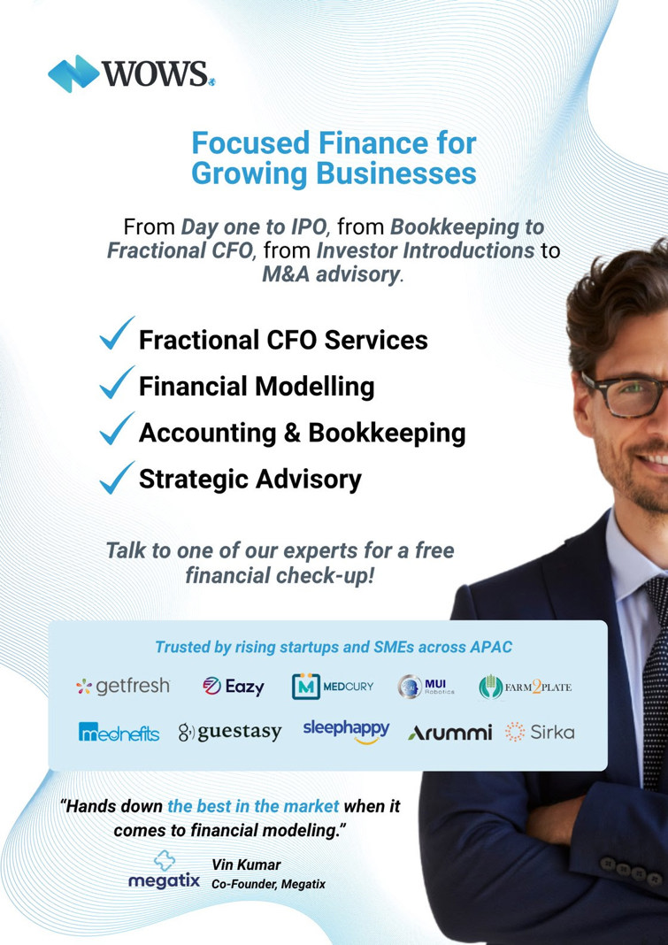 At WOWS Global, our Fractional CFO services give you high-impact financial support, without the cost of a full-time hire. From strategic planning to investor readiness, we help startups across Southeast Asia stay on top of their numbers and grow confidently. Let’s talk about how we can support your journey.