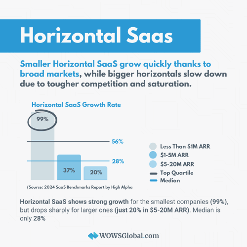According to the 2024 SaaS Benchmarks Report by High Alpha, vertical and AI‑native SaaS models are currently delivering higher median growth and stronger top‑quartile outcomes than horizontal peers. Teams evaluating product strategy, or where to place their next bet, should weigh specialization and AI‑native advantages alongside market size and go‑to‑market fit.